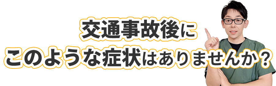 - 交通事故後から痛みや不調が続く、良くなっている感じがしない…